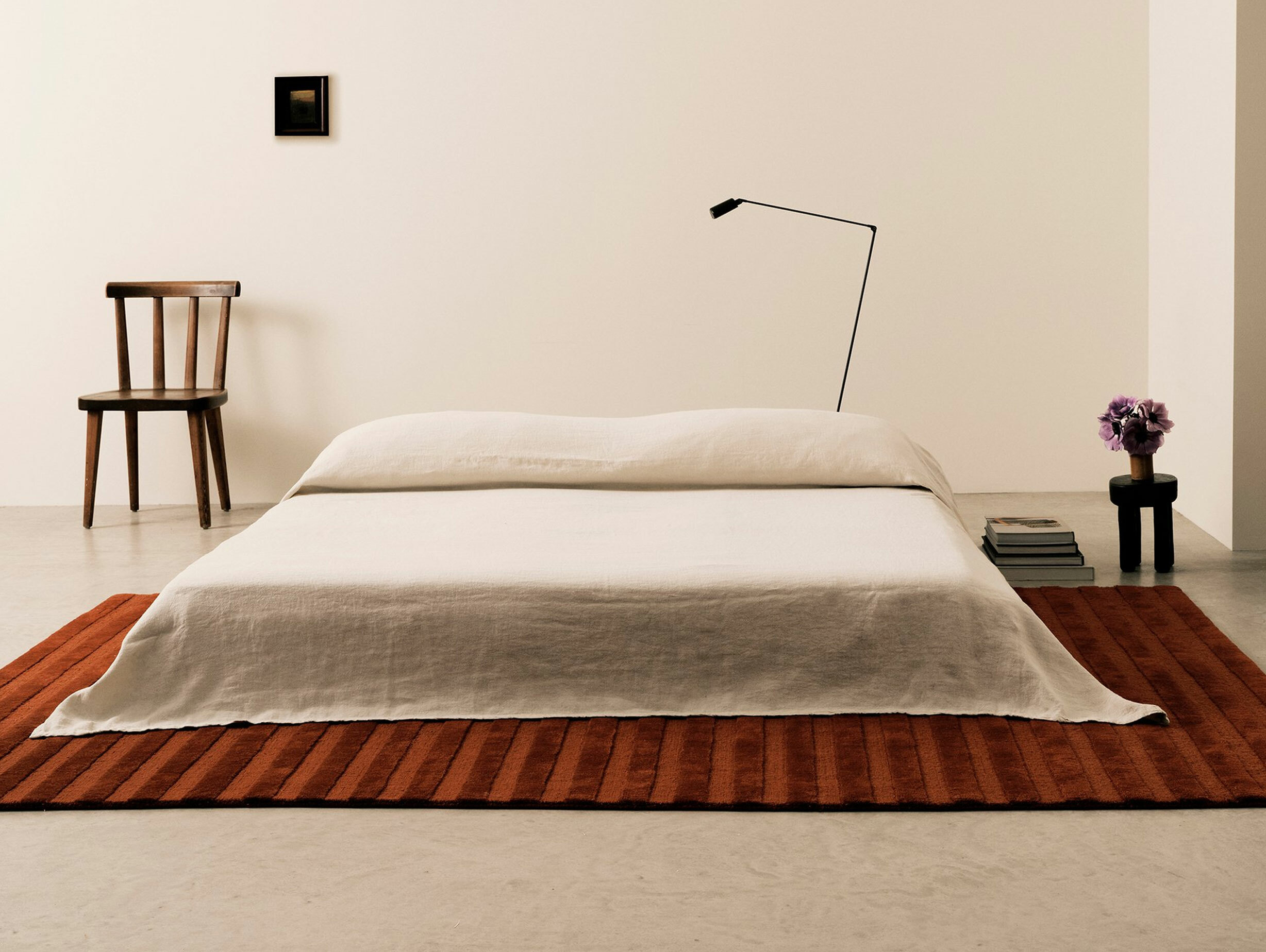 Crafted from New Zealand wool, each rug features densely woven loops and a hand-cut pile, creating a thick, tactile surface that feels luxurious underfoot. The design’s refined composition and subtle tonal shifts bring depth and warmth to modern living spaces.