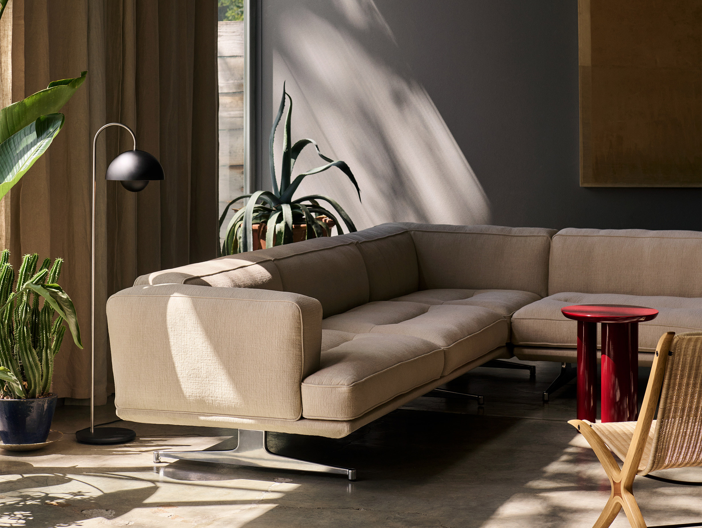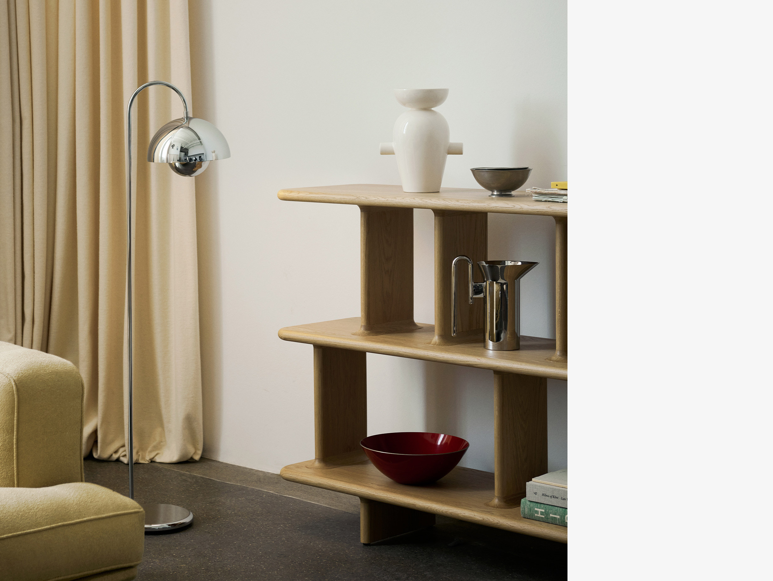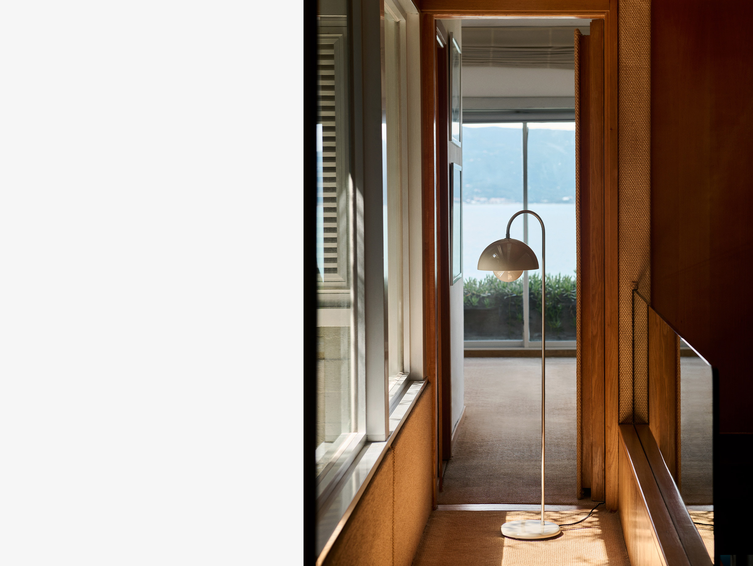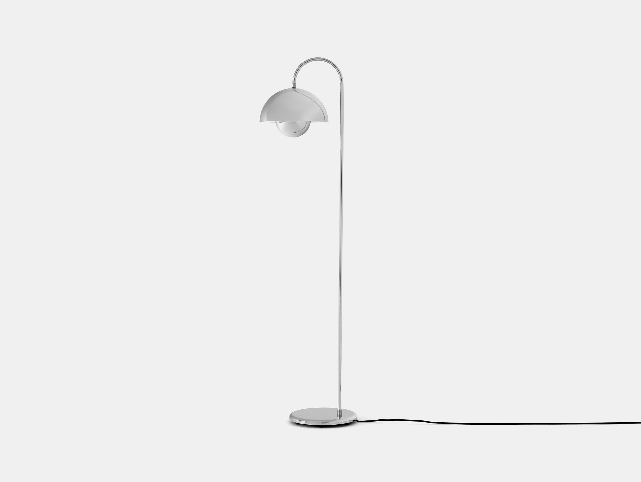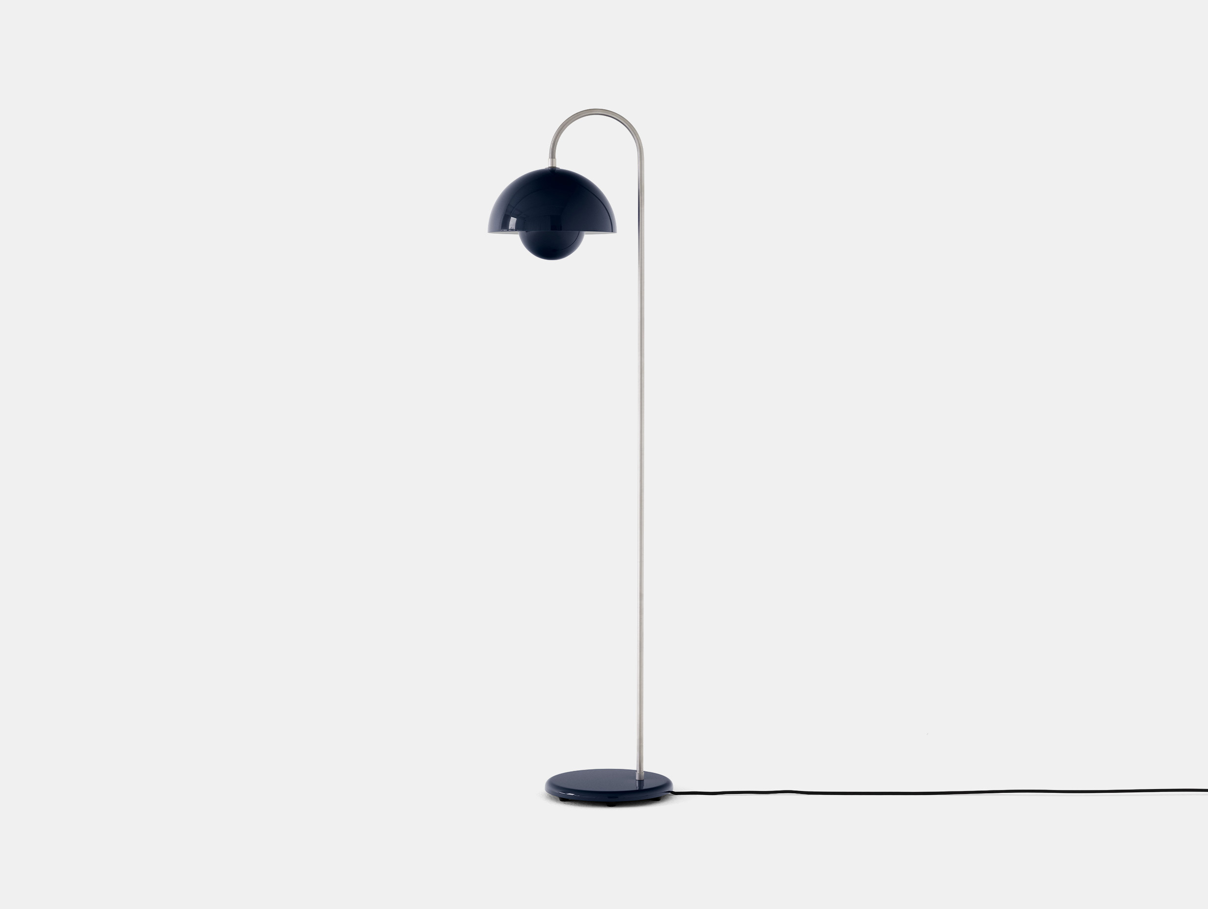 Composed of two hemispheres, it softly disperses light through its lacquered metal shade. True to Panton's disdain of “beige-grey conformity,” the Flowerpot Floor Lamp comes in a selection of colours, making it a versatile option for both residential and contract settings.