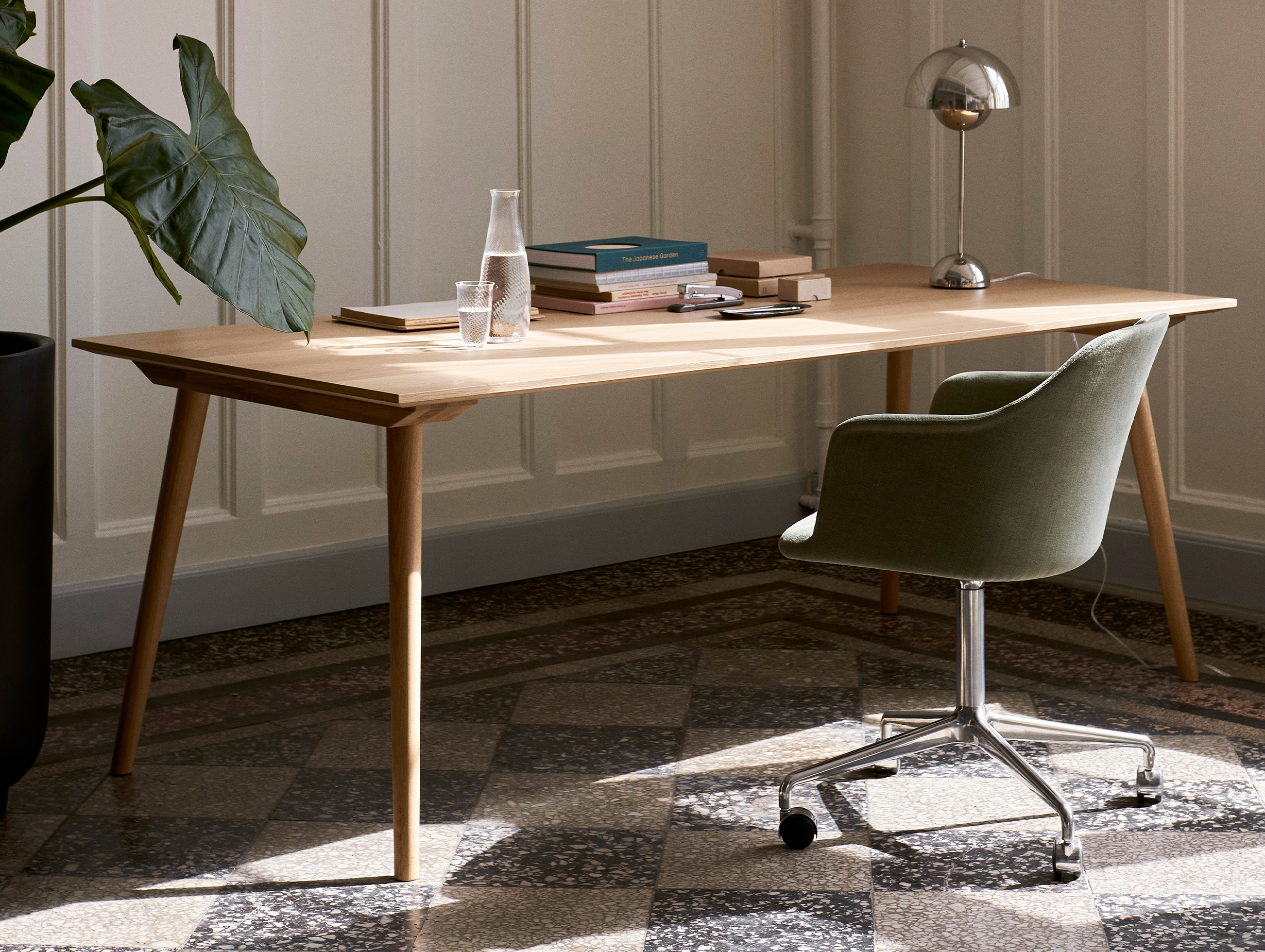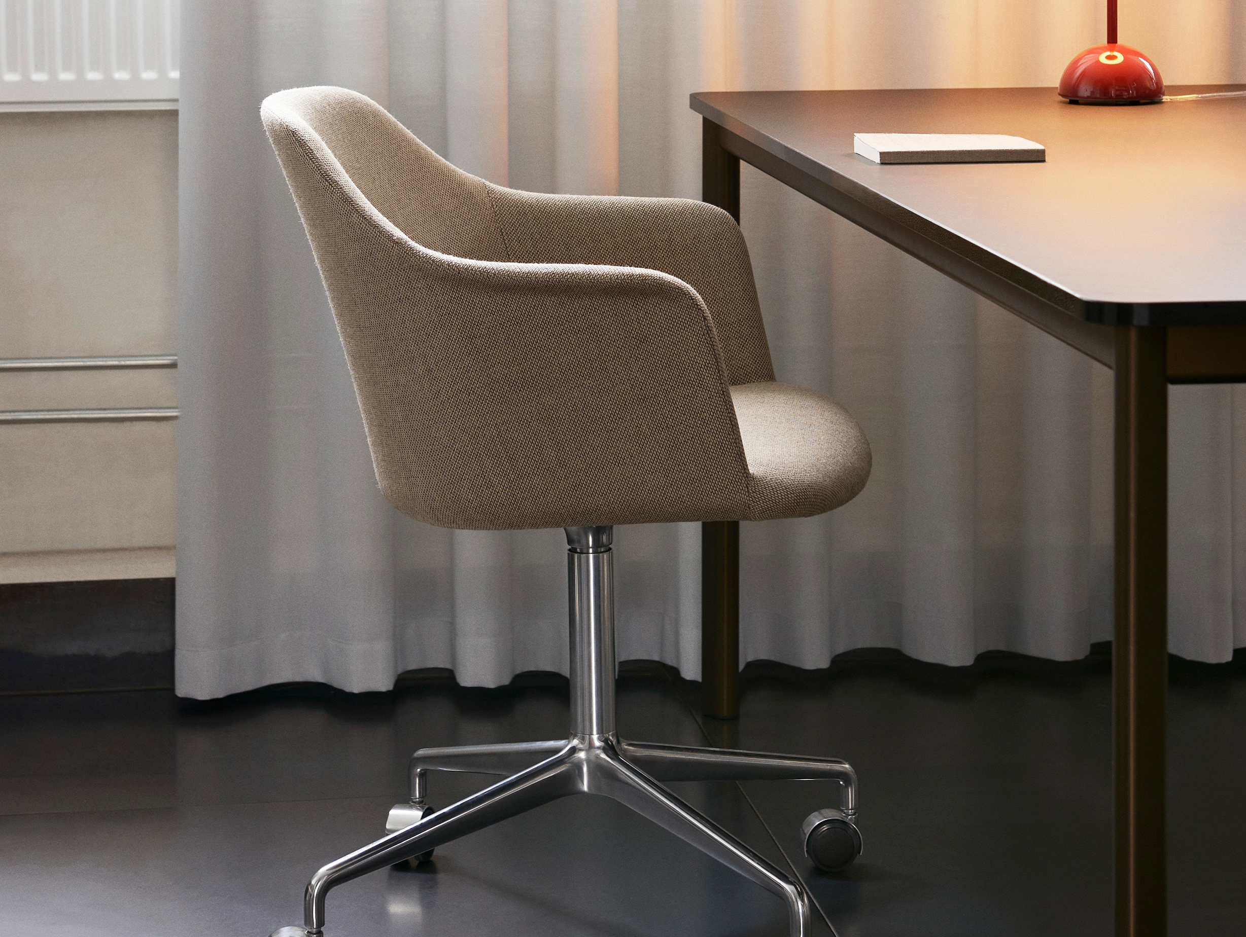 The Rely HW51 from &Tradition is a sleek contemporary office chair with a fully upholstered shell.