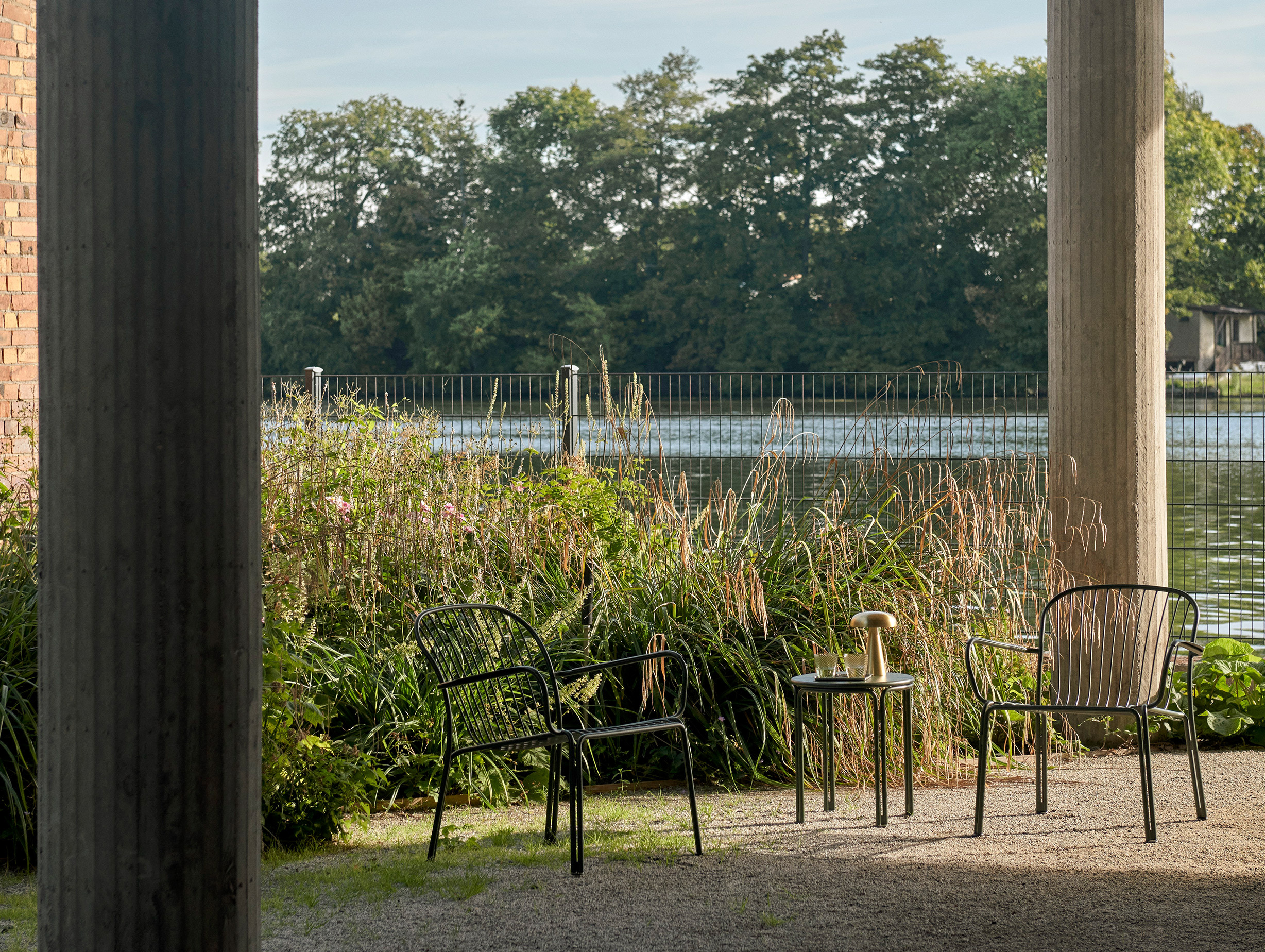 Available in powder-coated steel in Bronze Green, Ivory and Warm Black colourways.