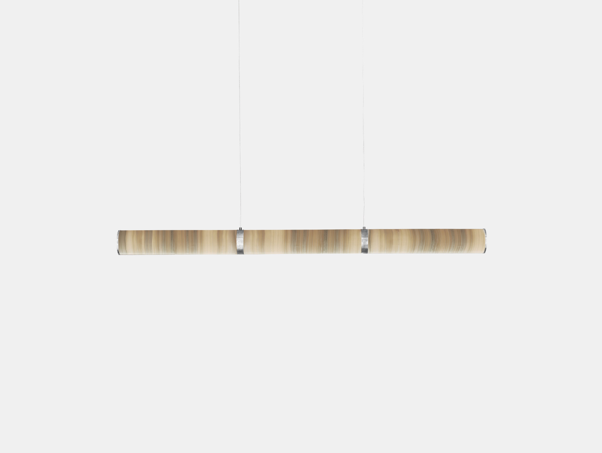 The integrated onyx shades diffuse light evenly, producing a soft and controlled glow. This is complemented by a refined metal structure that provides stability and a streamlined appearance. Manufactured from stainless steel, brass, and onyx stone, Pars combines durable materials with a restrained design approach, making it suitable for a range of contemporary interior settings.