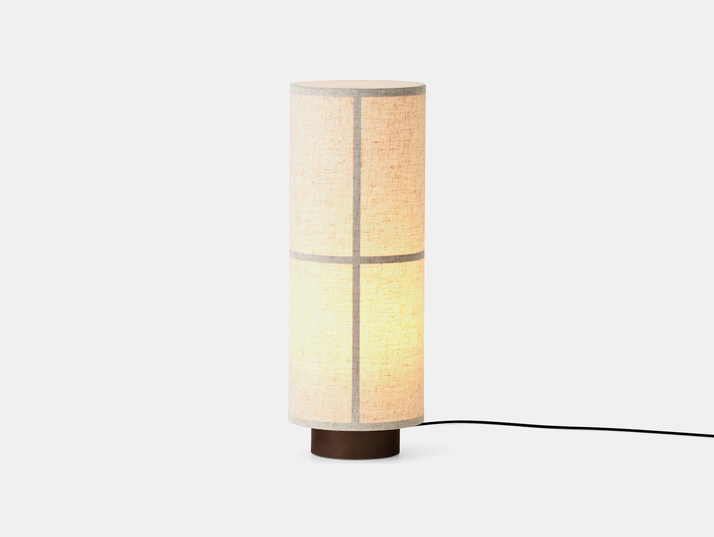 The cylindrical frame of Hashira is wrapped in a translucent textile that diffuses light evenly, creating a warm, atmospheric glow. Its understated form makes it a versatile addition to both residential and contract spaces, offering gentle illumination with a sculptural presence.