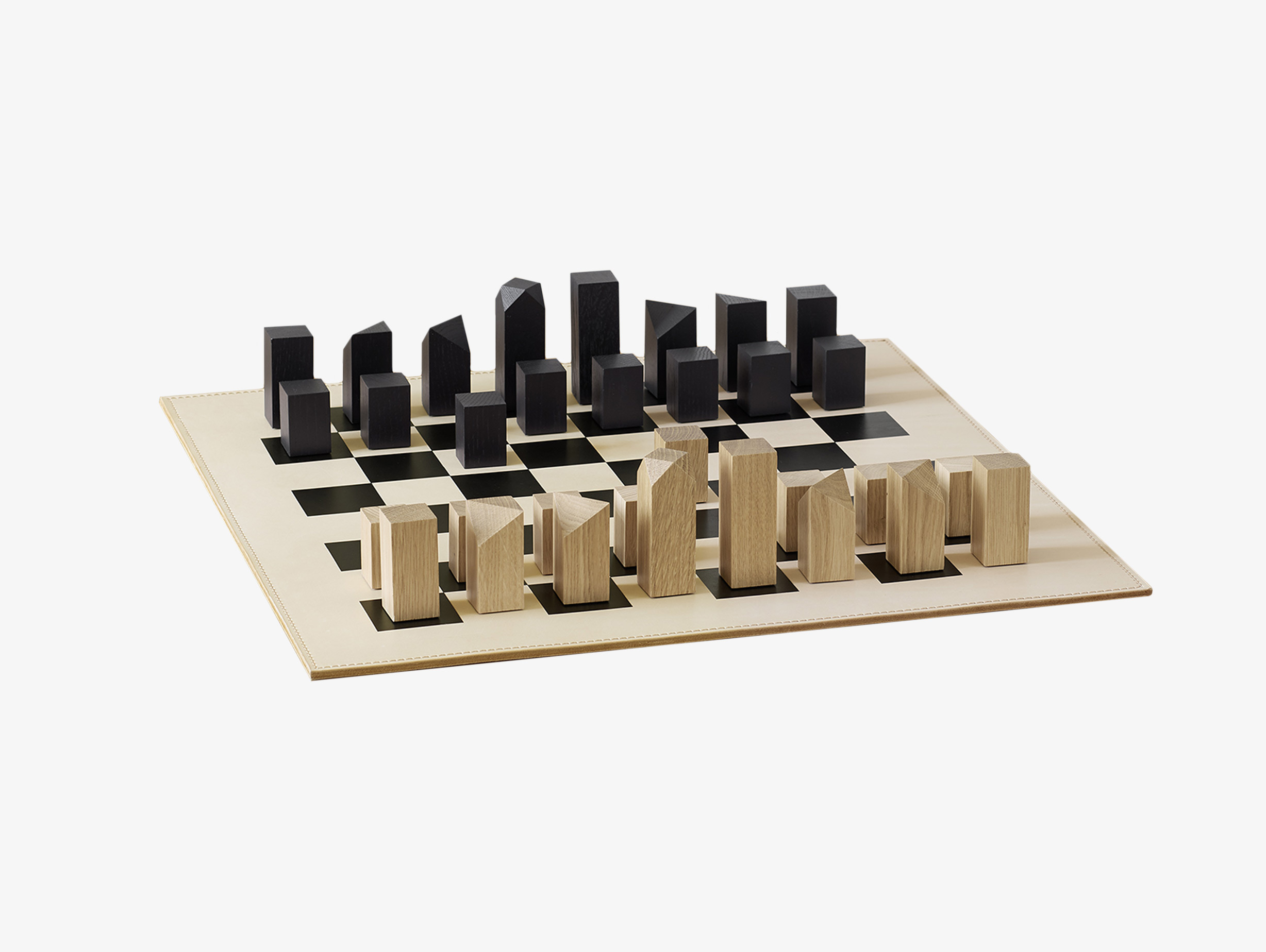 Combining precise craftsmanship with timeless design, the Nona Chessboard features layered natural leather, hand-waxed edges, and refined stitching. Designed to age gracefully, it pairs perfectly with the Nona chess pieces in lacquered natural and black oak finishes, offering a considered approach to chess essentials.