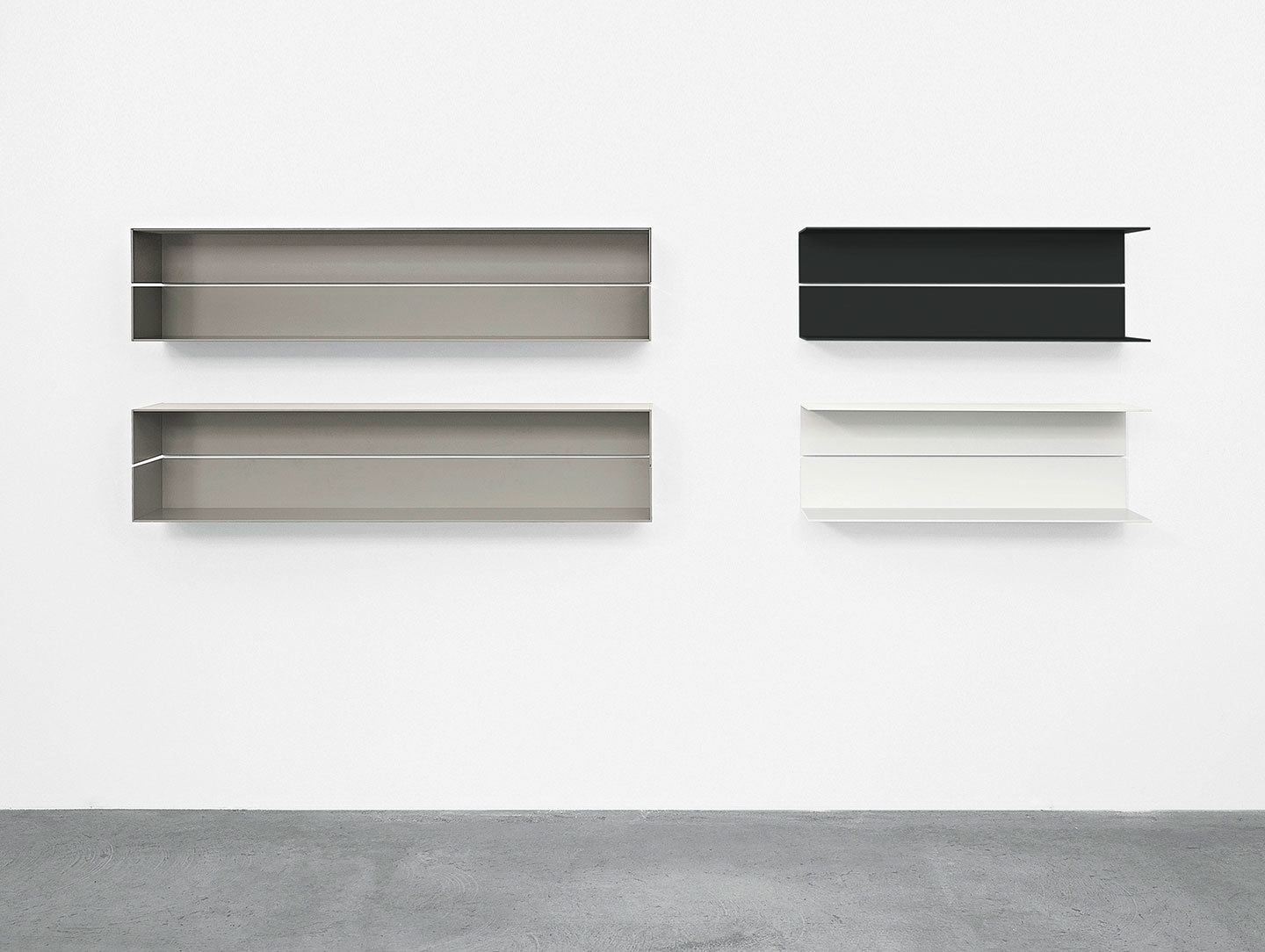 Comprising a single right angle of extruded aluminium, the Profil Shelf creates a cross-sectional profile that exposes its simplistic construction. It can be finished in the neutral colours Signal White, Silk Grey or Jet Black.