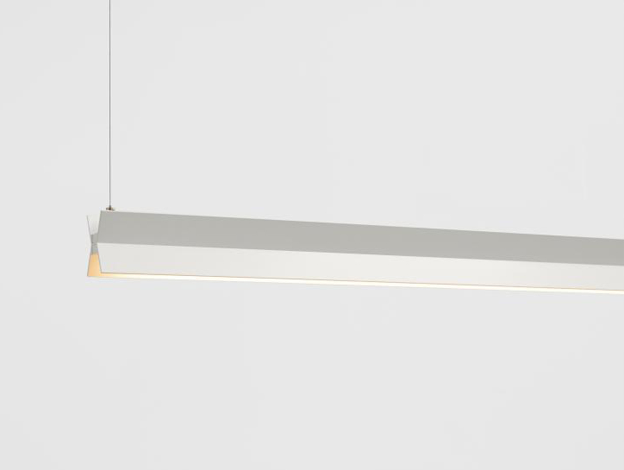 Its X-shaped body is suspended from either end, housing two diffusers within its pared-back form. Projecting both upward and downward light, the Span Pendant Light is ideal for illuminating tables and desks and is available in a range of lengths.