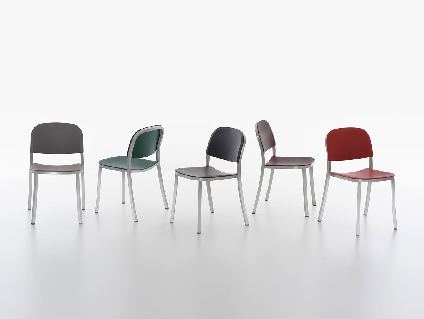 The 1 Inch Stacking Chair pairs recycled aluminium with a range of colourful finishes