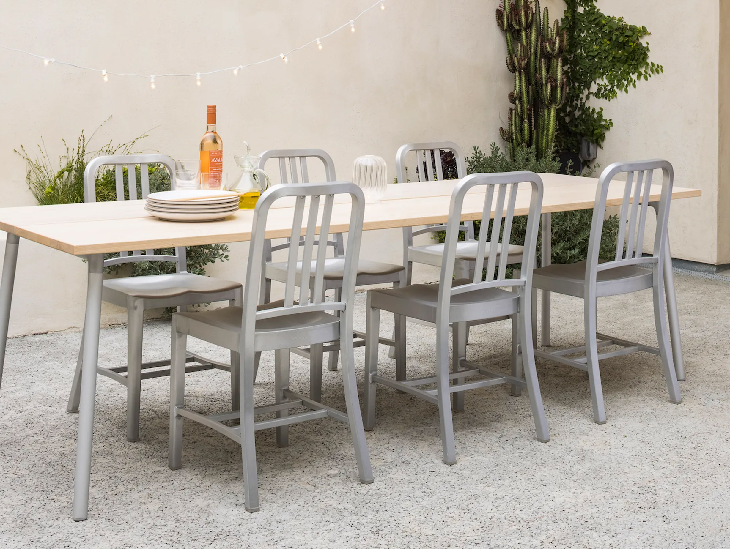Lightweight and durable, the US Navy originally commissioned the chair to be made for submarines and sailors . Created using Emeco's unique 77-step system, the production process of 1006 Navy Chair includes heat-treating, anodizing, and brushing to ensure that each chair is made with the highest resilience and strength.