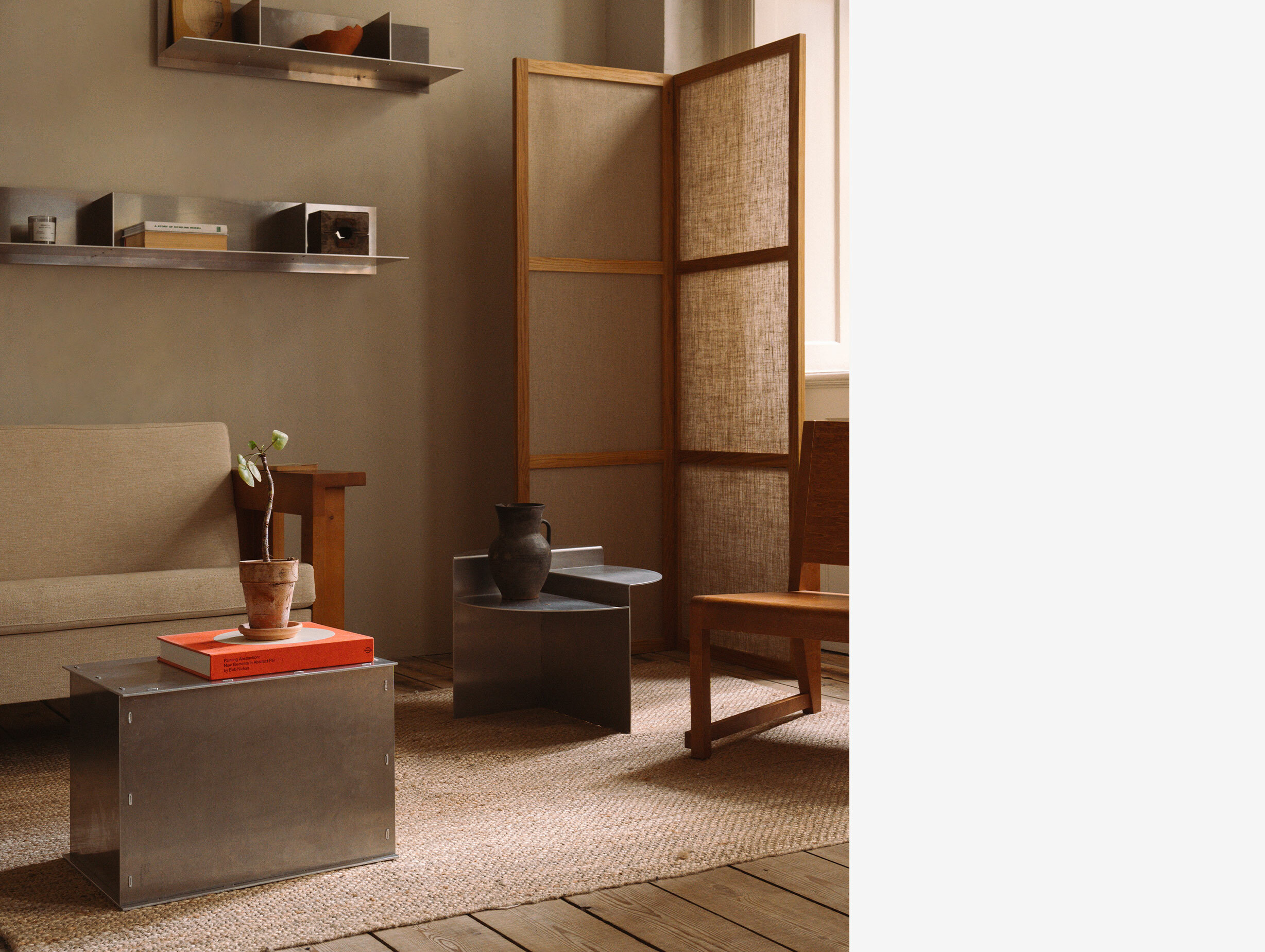 The untreated aluminium surface will naturally develop a rich patina over time, creating a unique expression in every piece. Suitable for both indoor and outdoor use, the Rivet Box Table is resistant to rust and designed to endure, holding up to 15 kg.