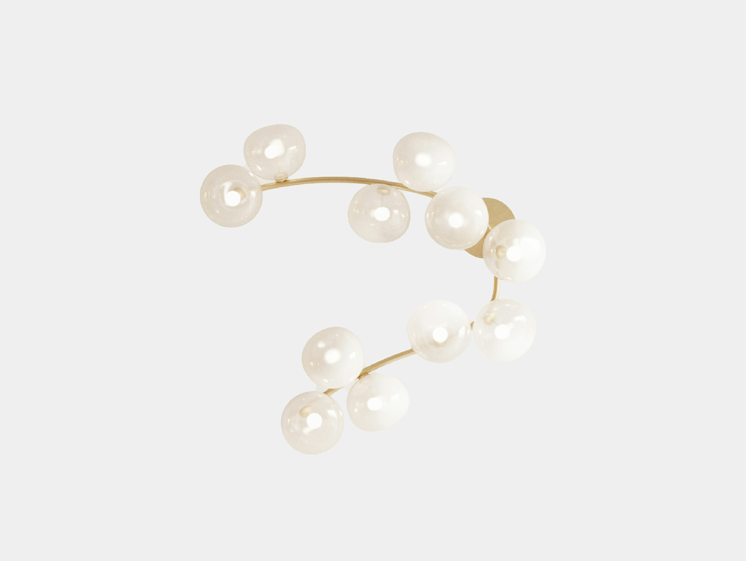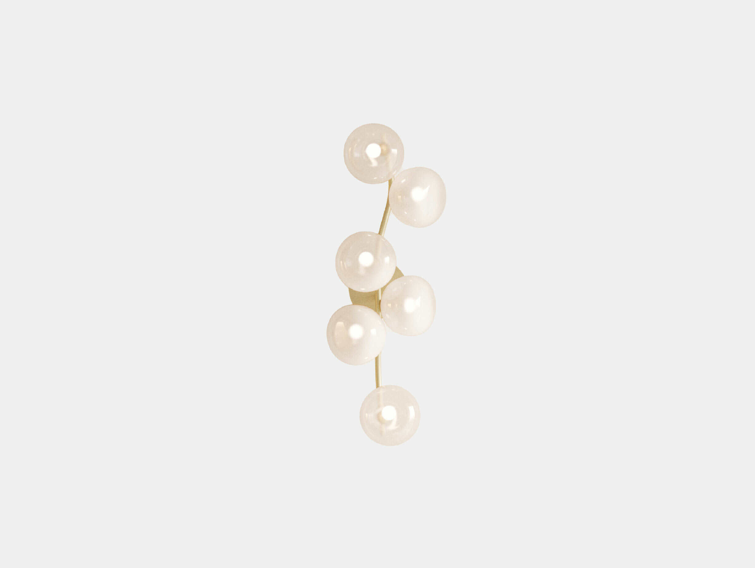 The handmade frame is available in brushed brass or brushed nickel finish. Each light element is made from handblown borosilicate glass and available in transparent, translucent or blushed glass.