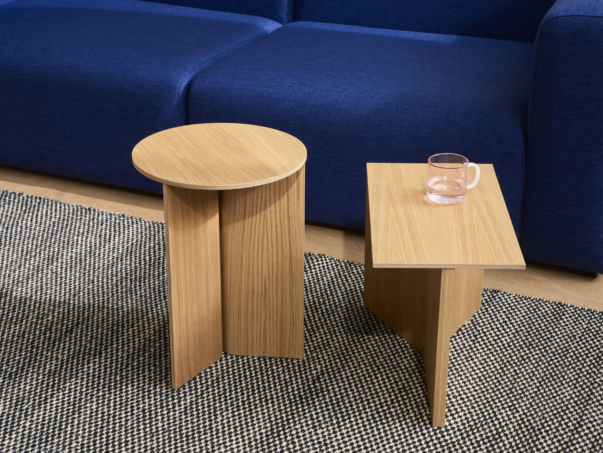 Crafted with a veneer wood finish, the Slit Table Wood, High is available in Oak, Black Oak, Walnut, Pink, Vivid Blue or Candy Red.