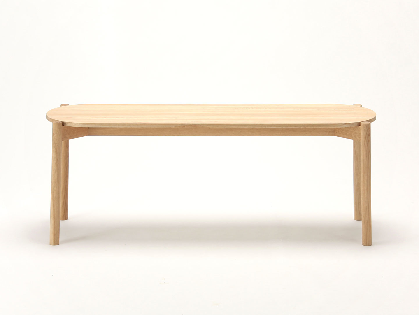 Made of solid oak, the bench is available in the finishes, Pure Oak, Grain Grey or Black.
