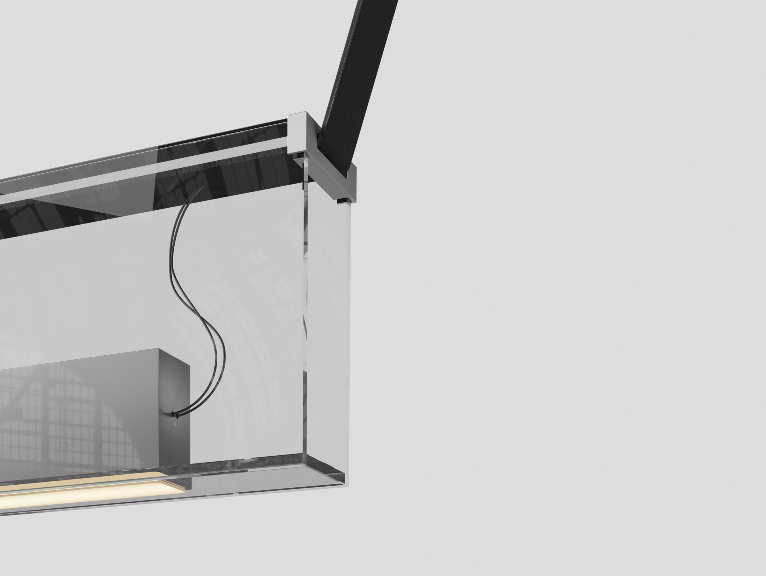 Made of aluminium polished, polyester laminated glass, nylon ribbon and PMMA frosted diffuser.