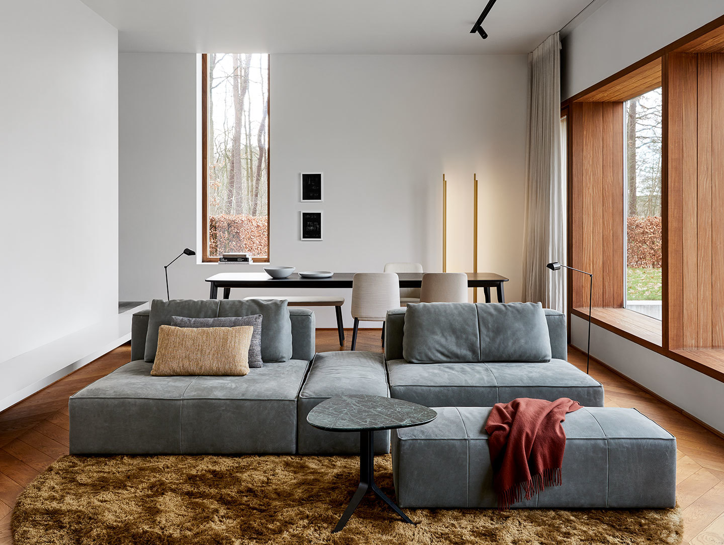 The Dante Table top is available in the following wood finishes: Solid Oak with a clear matt lacquer or white oiled, Solid Ash black carbon or white stained, or Solid Walnut with a clear matt lacquer. The stone finishes are Marron Emperador (brown), Arebescato (white) or Verde Alpi (green) marble, or Nero Bernini Granite (black). The base comes in Matt Black or Brown Metallic powder coated steel.