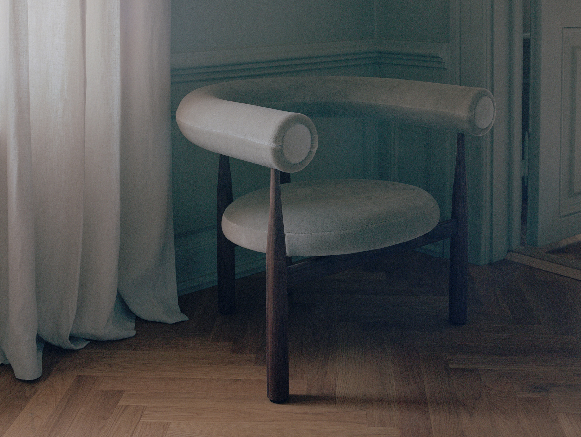 Blending elegance with a playful form, the curved legs of the Bukowski transitions smoothly from slender to substantial, creating a distinctive silhouette. The upholstered seat provides comfort and visual contrast, with custom options available.