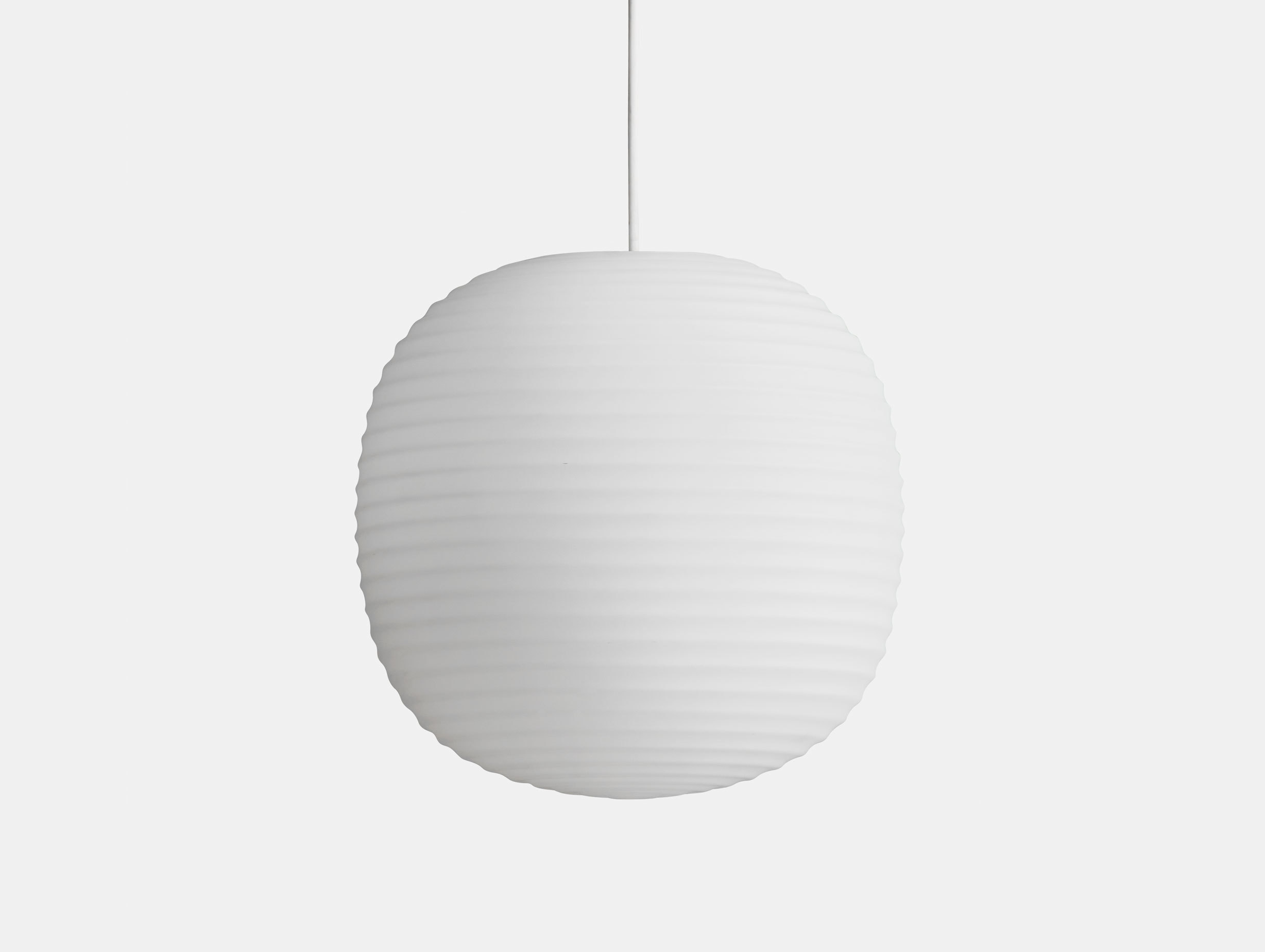 A minimalist pendant lamp which mimics the calm illumination of traditional Chinese paper lanterns.