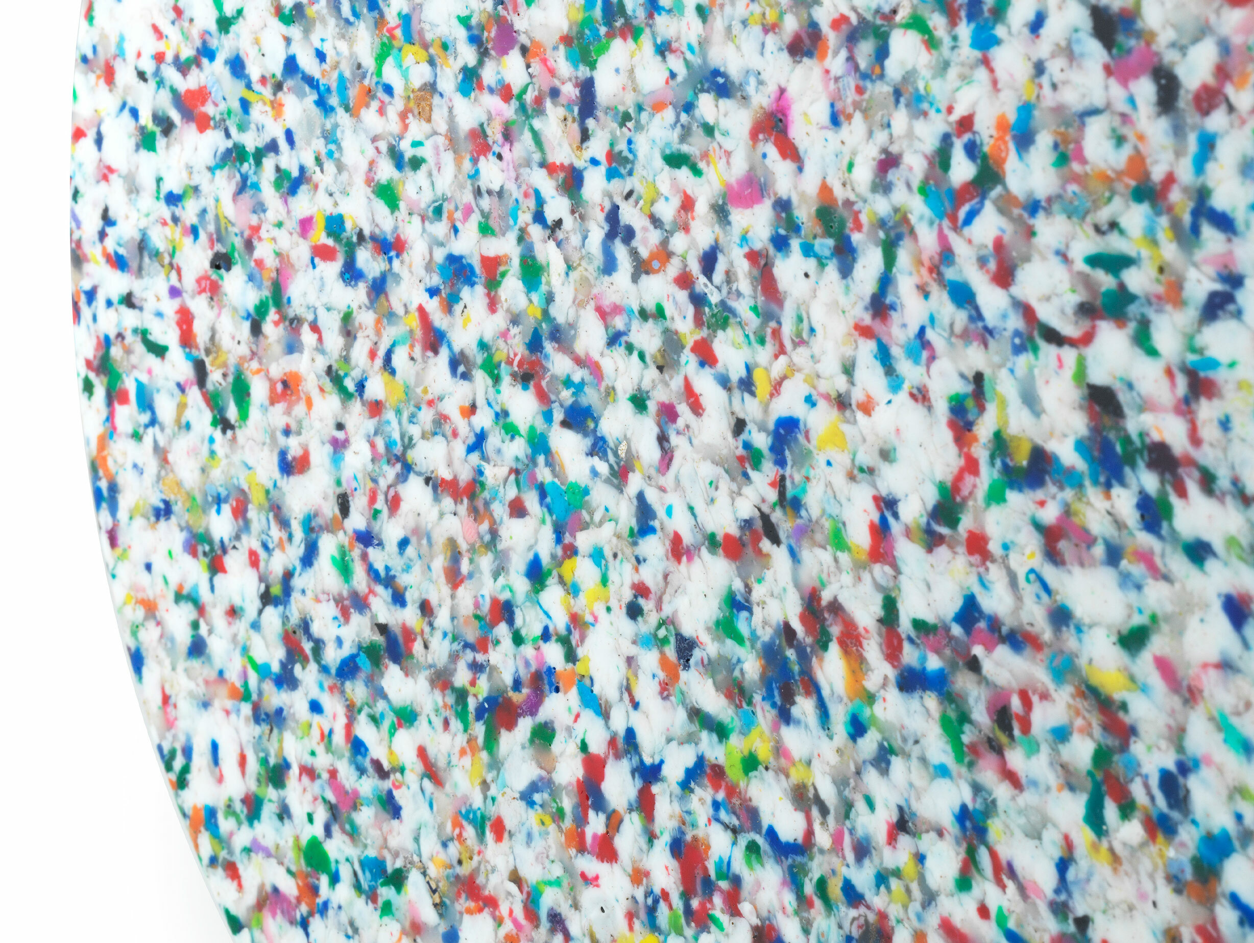 Crafted from up to 95% recycled household and industrial plastic, each Bit Stool features a pixelated surface made from small fragments of plastic, creating a unique and playful speckled pattern on every piece.