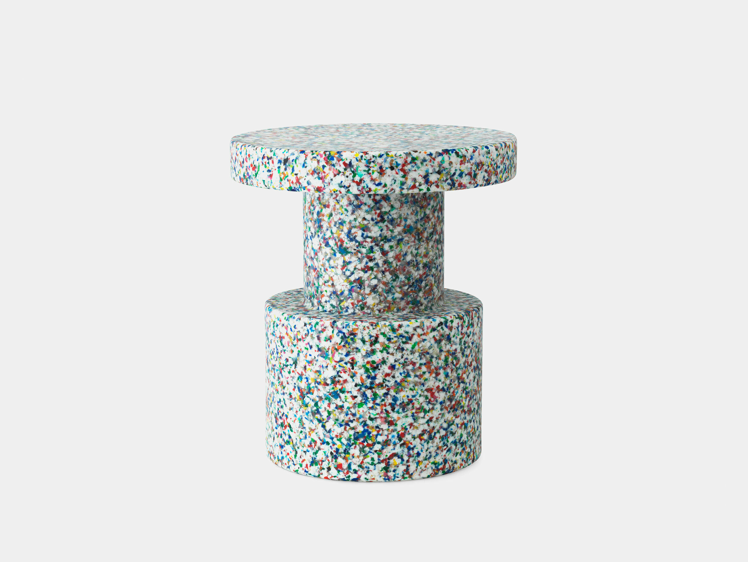 A sculptural stool made from up to 95% recycled plastic, each Bit Stool is unique