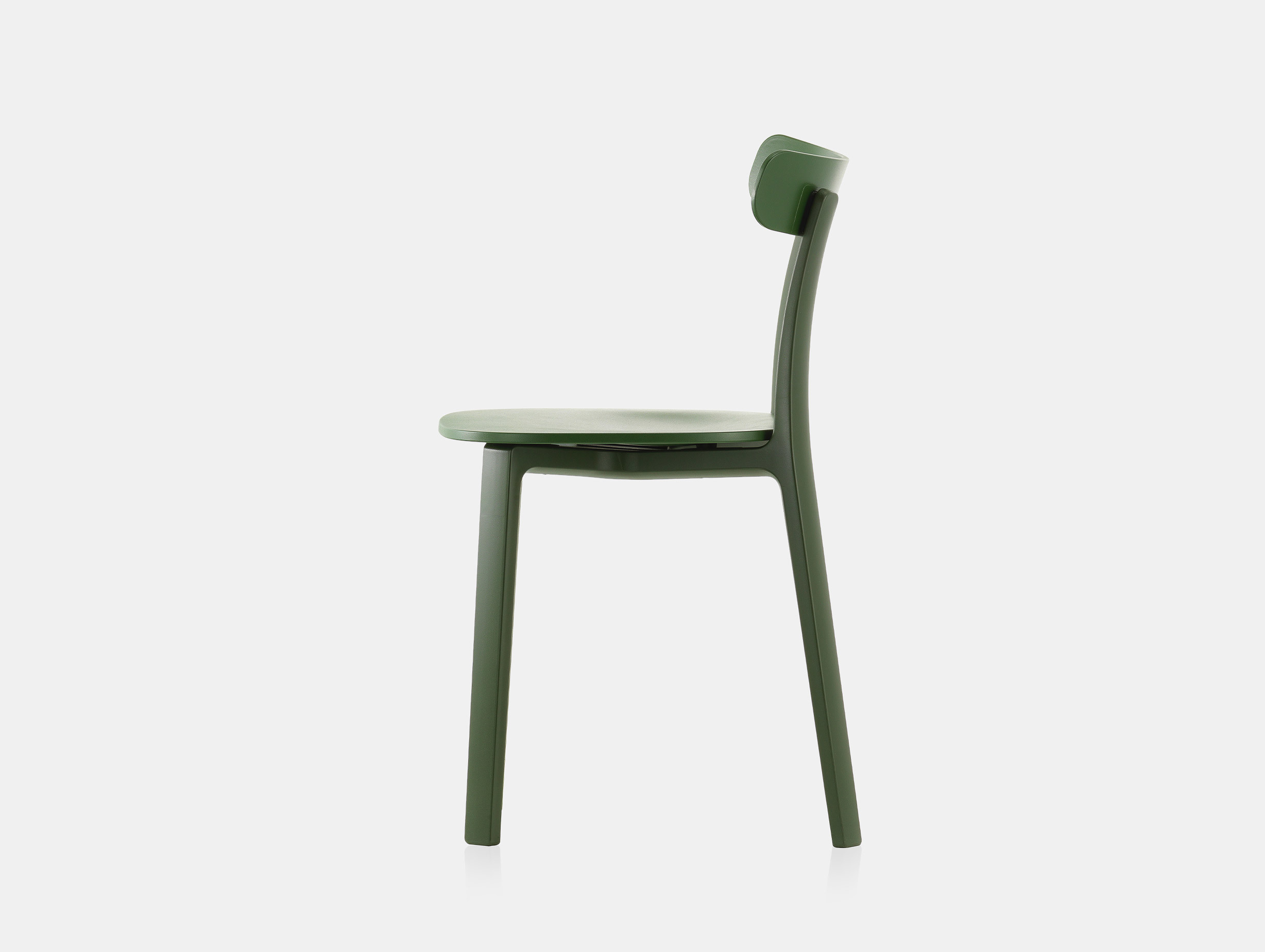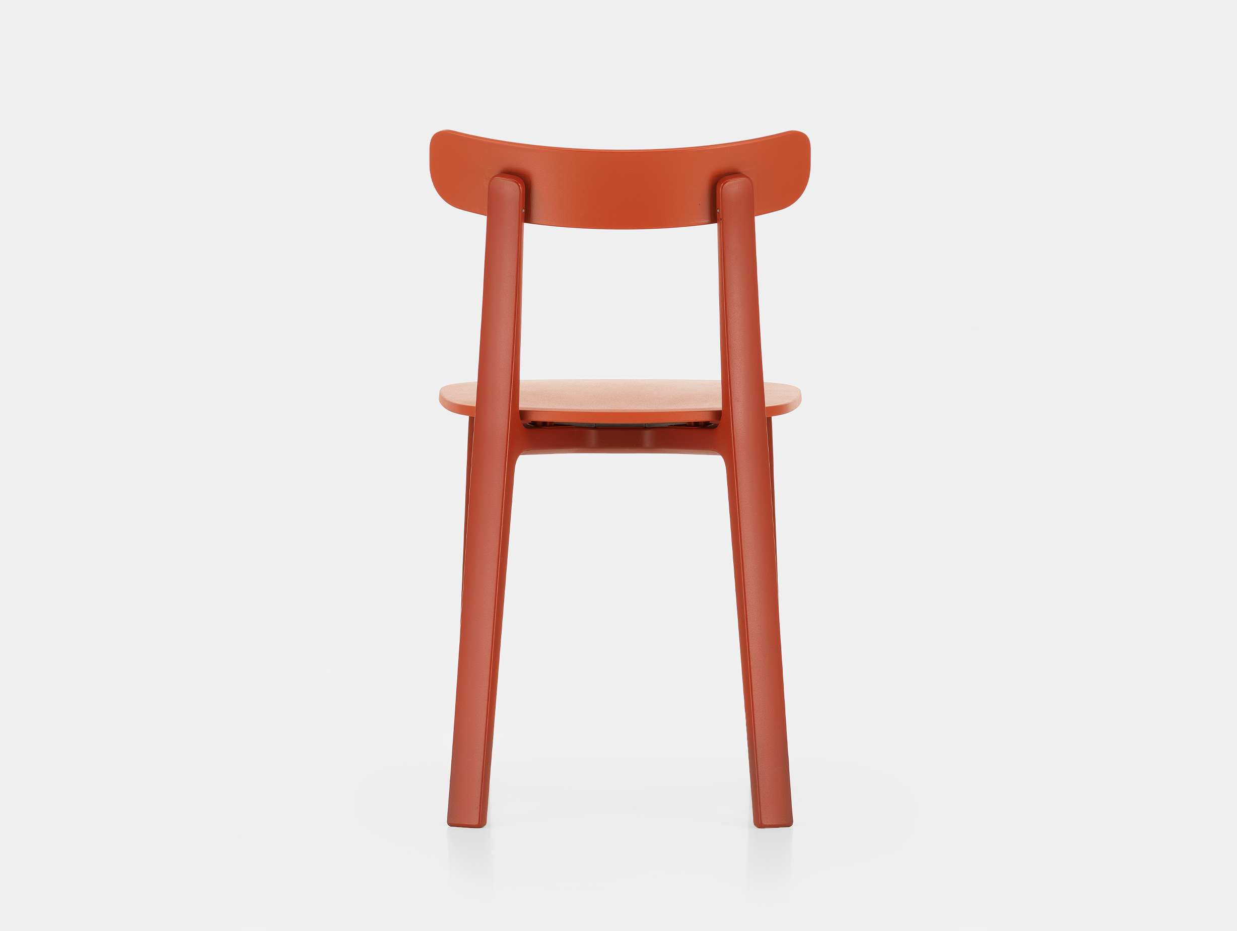 The flexibility of plastic means that the frame can be cast as one piece, while the thin seat and back are precisely moulded for comfort. The organically shaped backrest is attached to the frame by rubber buffers, which flex gently with your body as it moves.