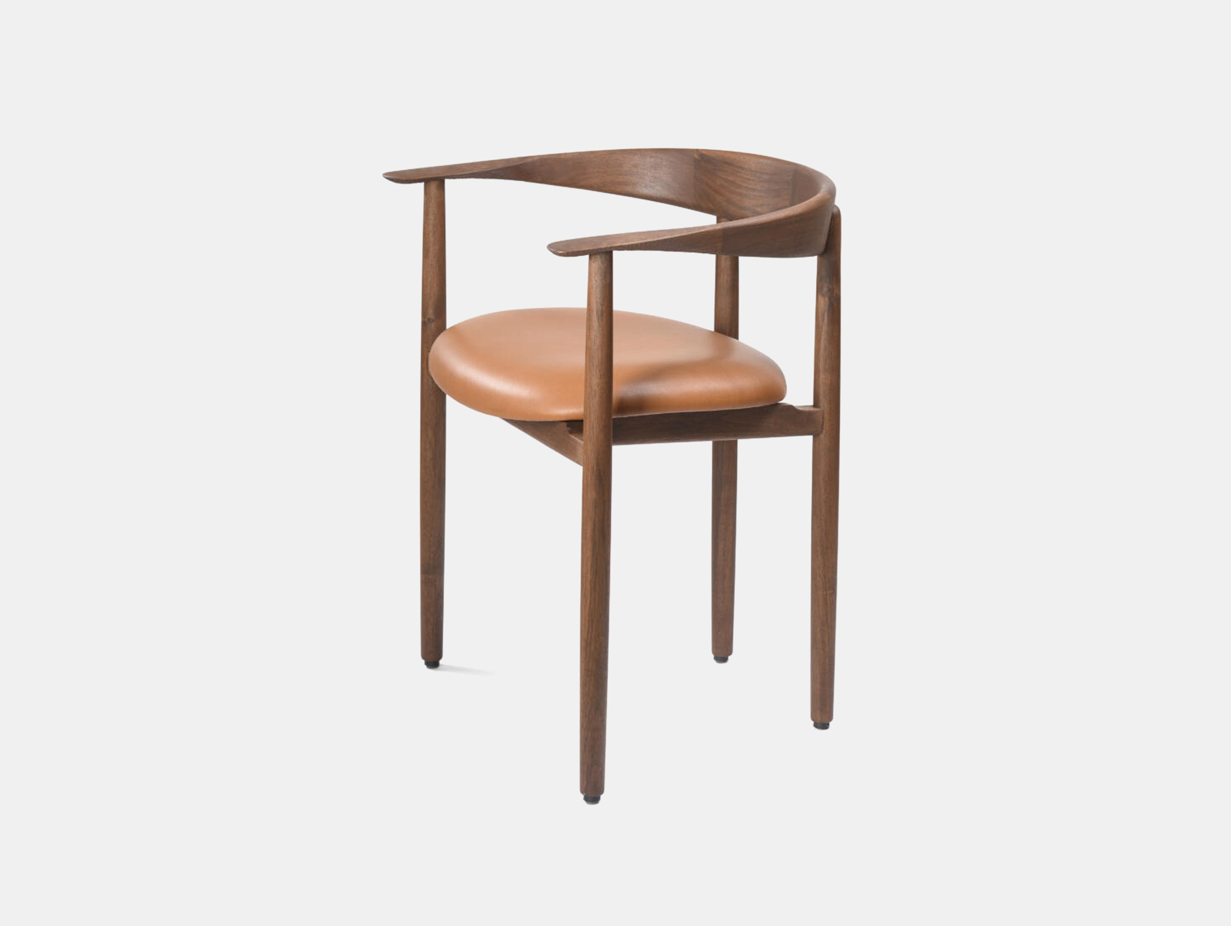 Crafted in solid maple, oak, or walnut, with a choice of fabric or leather upholstery. Offered online in three different finishes and upholstery.